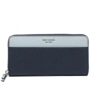 Make a classy addition to any handbag with this refined & gorgeous Kate Spade wallet. Crafted in cross-hatched leather, it opens to reveal a well-organized interior with 3 bill folds, 12 card slots, an interior coin zip pocket & an ultra-convenient back slide pocket.