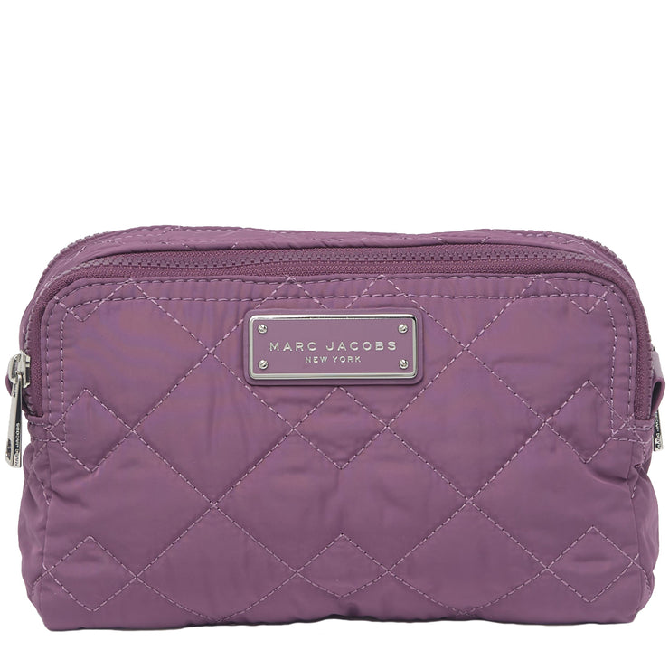 This Marc Jacobs spacious cosmetic pouch is a chic way to carry your make-up, stationery or essentials! Crafted in light-weight & water-resistant nylon with signature logo hardware.